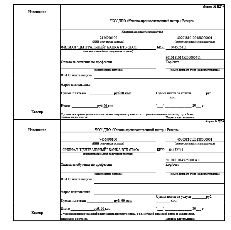 Оплатить обучение вы можете в любом банке при помощи заполненной квитанции.